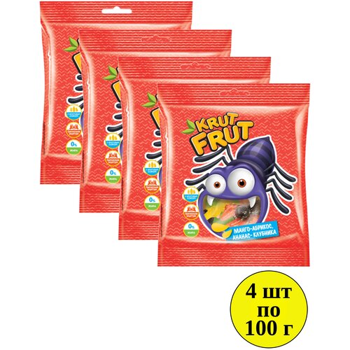 Мармелад KDV КрутФрут жевательный в форме Паучков манго-абрикос, ананас-клубника, 4 шт по 100 г