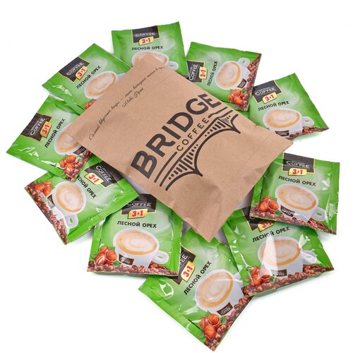 Напиток кофейный Bridge Coffee 3 в 1 с ароматом лесного ореха, 20 г (упаковка 10 шт)