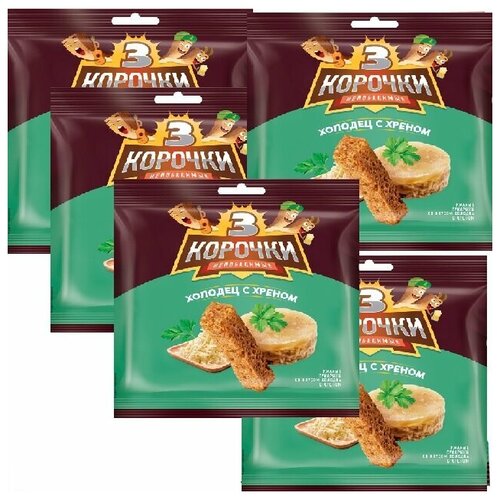 Сухарики 3 Корочки, со вкусом холодца с хреном, 5шт по 100гр,