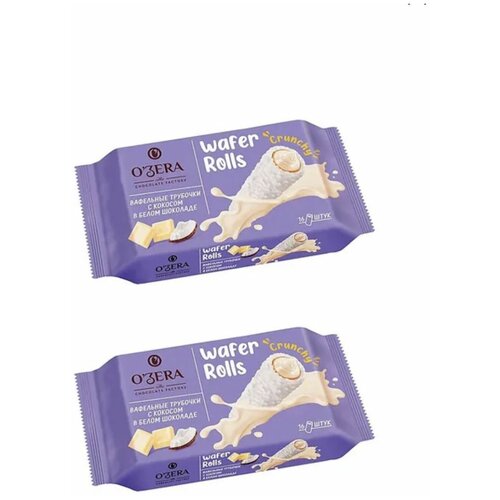 Трубочки KDV OZera вафельные с кокосом в белом шоколаде,2 шт по 185 г