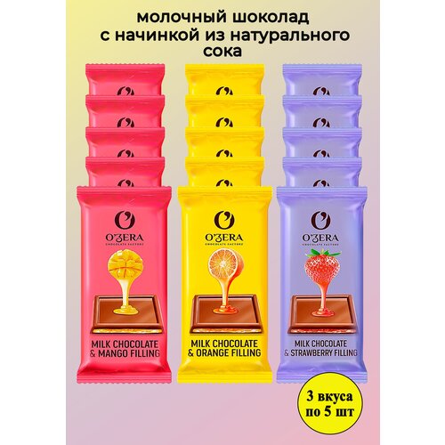 Шоколад KDV OZera Milk молочный c начинкой микс 3 вкусов, 15 шт по 24 г