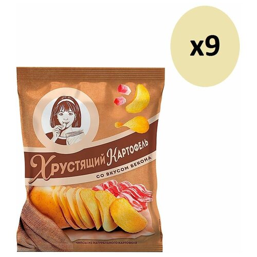 Хрустящий картофель, чипсы со вкусом бекона, произведены из свежего картофеля, 160 г — 9 пачек