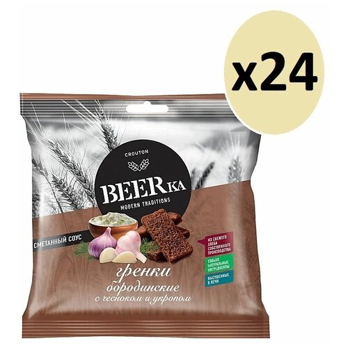 Beerka, сухарики со вкусом чеснока с укропом и сметанным соусом, 85 г — 24 пачки