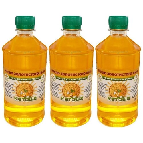 Льняное масло Кетоша нерафинированное из золотистого льна, 500 мл х 3 штуки