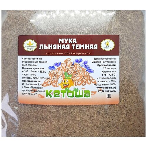 Мука льняная частично обезжиренная (темный лен) 1 кг