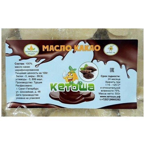 Масло какао натуральное нерафинированное, 500г