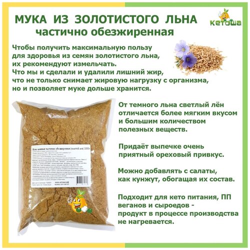 Мука льняная частично обезжиренная (золотой лен) 1 кг