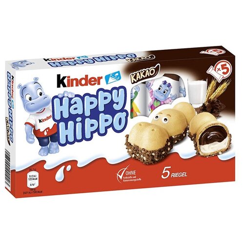 Шоколадно-молочное печенье Kinder Happy Hippo, с какао, 20,7 гр, 28 шт