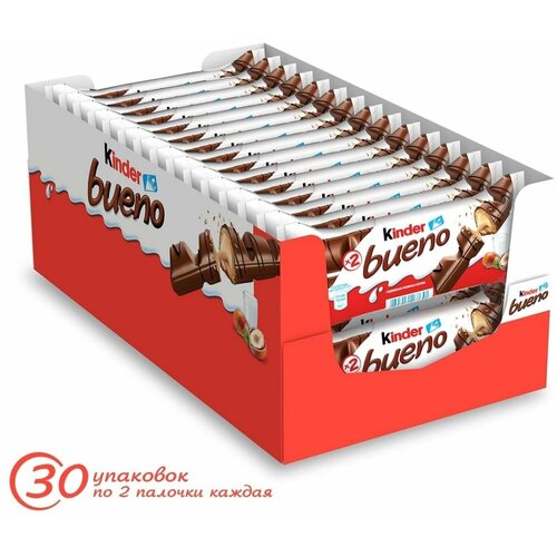 Вафли Kinder Bueno, покрытые молочным шоколадом, c молочно-ореховой начинкой 30 штук