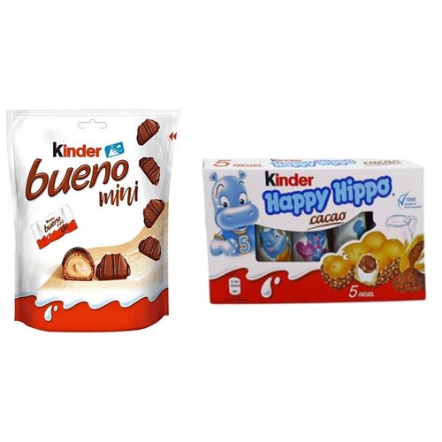 Набор Kinder из двух сладостей (Батончики Bueno Mini 108 гр. + Бегемотики Happy Hippo Cacao 104 гр.)