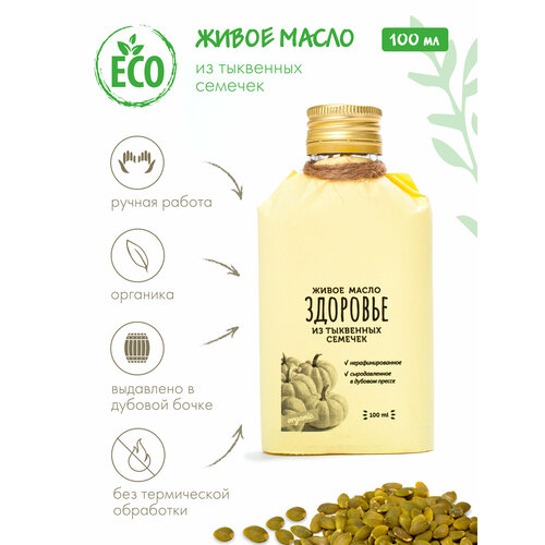 Сыродавленное тыквенное масло 100 мл нерафинированное холодного отжима "Киндераш" без нагрева, без контакта с металлом