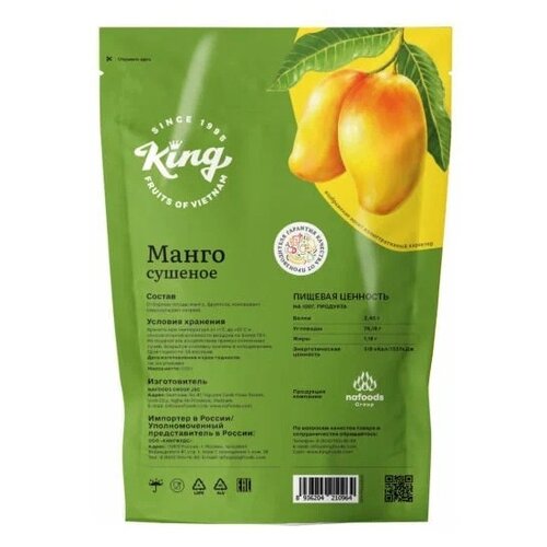 Манго натуральное сушеное KING, 500+500г / Свежий продукт / Сухофрукты Манго / Манго без ГМО / KING Nafoods Group