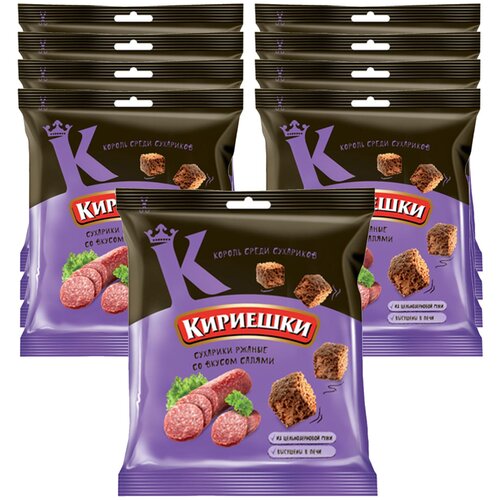 Кириешки», сухарики со вкусом салями, 9 пачек по 40 г