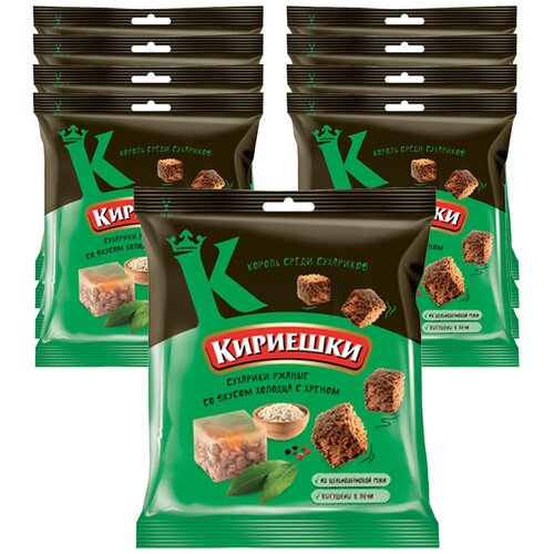 Сухарики KDV "Кириешки", ржано-пшеничные, вкус холодца и хрена, 40г, набор 10шт.