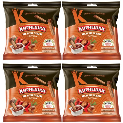 «Кириешки», сухарики со вкусом шашлыка и кетчупом «Heinz», 4 пачки по 85 г