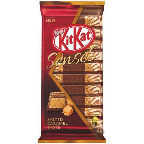 KitKat Senses SALTED CARAMEL taste. Молочный и белый шоколад с хрустящей вафлей, со вкусом соленой карамели, декорированный 110г