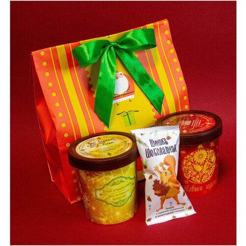 Подарочный пакет Два чая (Чай индийский черный Ассам FOP-100гр, чай элитный белый Белый слон-50гр, конфета Шоколадная шишка-1шт)