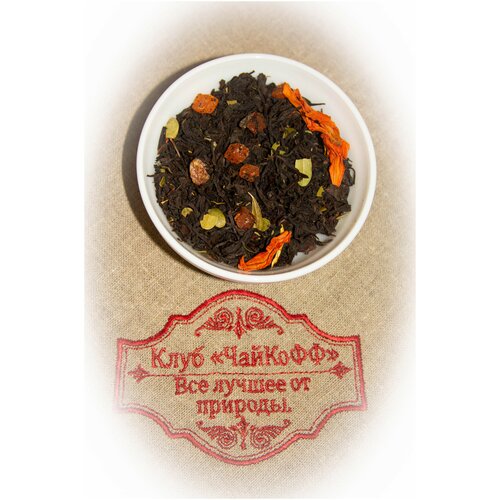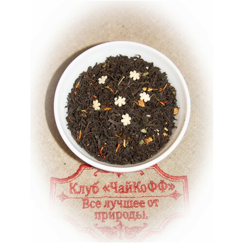Чай черный Мандариновый(чай с добавлением цедры апельсина,цветков липы,кондитерскими изделиями звездочки и лепестками сафлора) 500