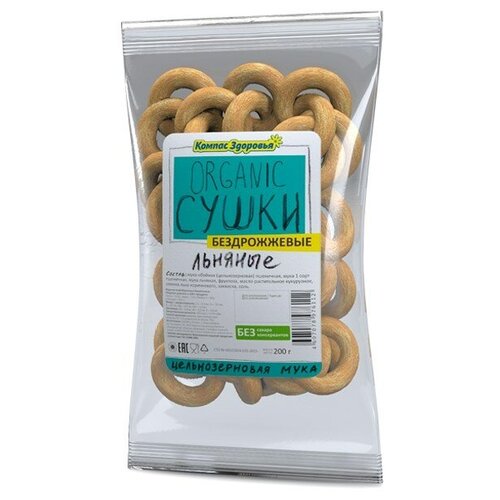 Сушки льняные бездрожжевые 200 гр Компас здоровья (2 шт. в наборе)