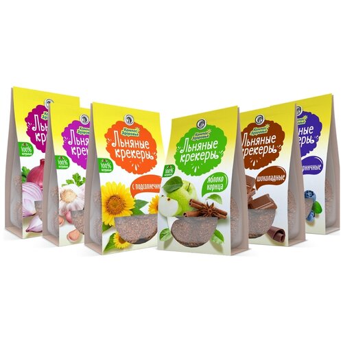 Крекеры льняные в ассортименте по 50 г Компас Здоровья, в наборе 6 шт