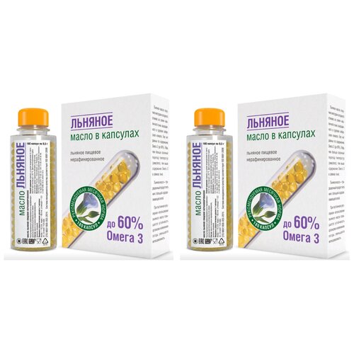 Масло льняное в капсулах 0,3 г №180 (Компас здоровья) в наборе 2 шт