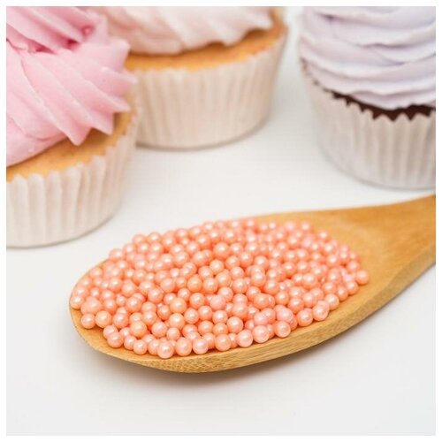 Кондитерская посыпка шарики 4 мм, розовые глянцевые, 50 г