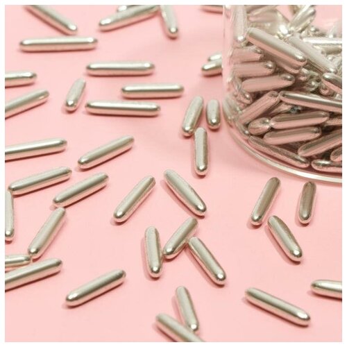 Кондитерская посыпка, палочки зеркальные, серебро, 50 г