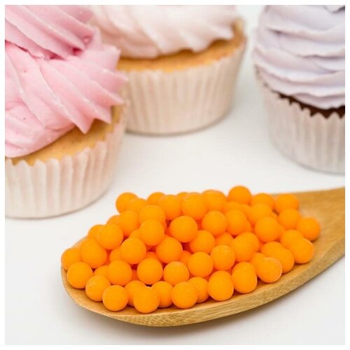 Кондитерская посыпка шарики 8 мм, оранжевые перламутровые, 50 г