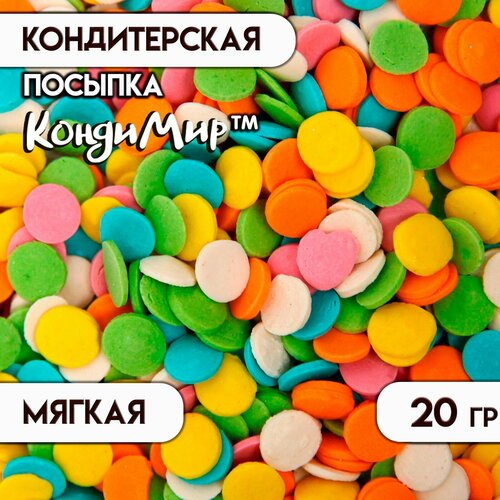 Посыпка кондитерская "Конфетти": жёлтая, голубая, розовая, белая, оранжевая, зеленая, 20 г 1шт.
