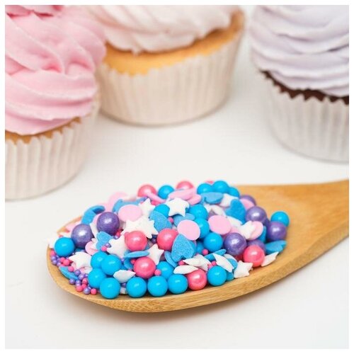 КондиМир Кондитерская посыпка "Шарики микс голубой,лиловый, розовый", 50 г