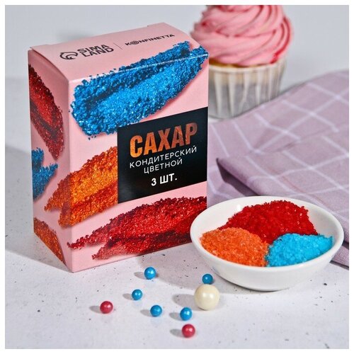 KONFINETTA Набор кондитерского цветного сахара KONFINETTA: голубой, оранжевый, красный, 150 г.