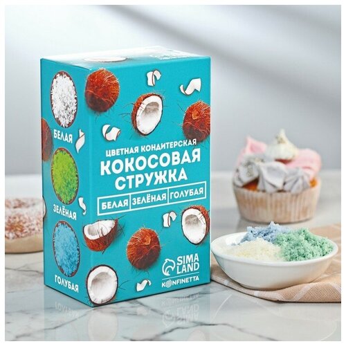 KONFINETTA Набор кокосовой стружки KONFINETTA: белая, зелёная, голубая, 90 г.