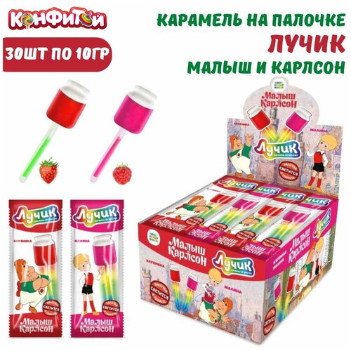 Карамель на светящейся палочке лучик Малыш и Карлсон, 30 штук по 10 грамм / Конфитой