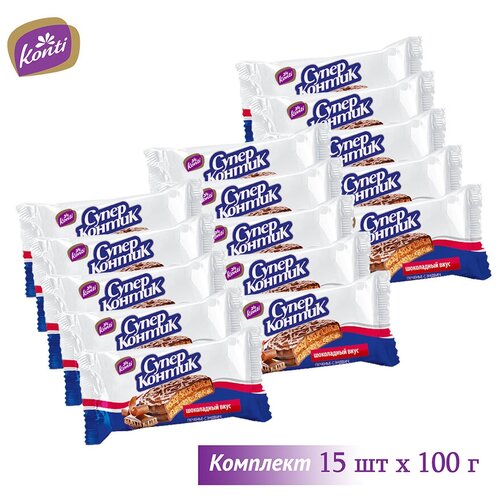 Печенье-сэндвич "Супер Контик" с шоколадным вкусом, комплект 15 шт по 100 г