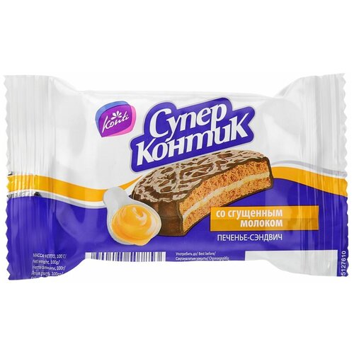 Печенье-сэндвич Konti Супер-Контик со сгущенным молоком, 100 г х 50 шт