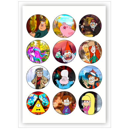 Вафельная толстая картинка для торта. Съедобная, пищевая картинка. Украшение для торта и декор для выпечки. Размер А4. "Gravity Falls (Гравити Фолз)"