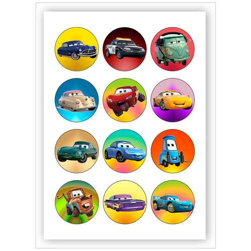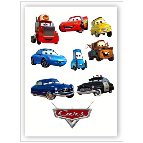 Вафельная толстая картинка для торта. Съедобная, пищевая картинка. Украшение для торта и декор для выпечки. Размер А4. "Cars (Тачки)"