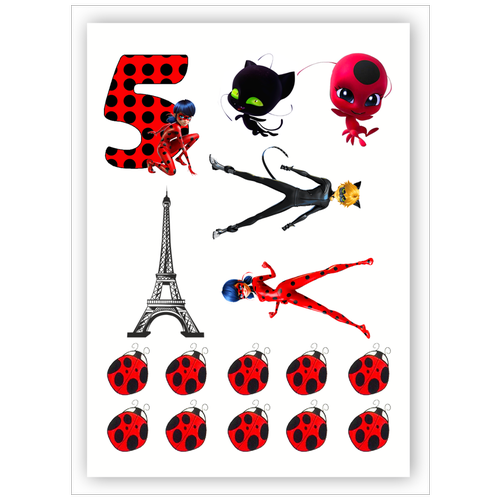 Вафельная толстая картинка для торта. Съедобная, пищевая картинка. Украшение для торта и декор для выпечки. Размер А4. "(Леди Баг и Супер-Кот)"