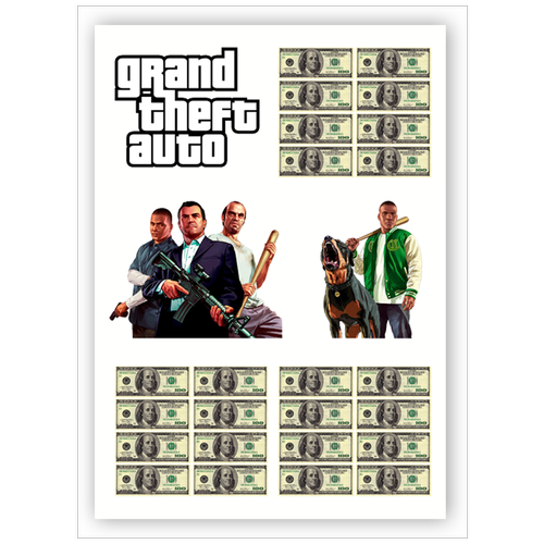 Вафельная толстая картинка для торта. Съедобная, пищевая картинка. Украшение для торта и декор для выпечки. Размер А4. "GTA V (ГТА)"