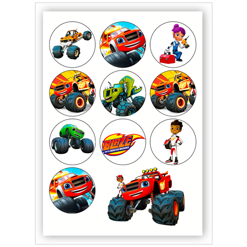 Вафельная толстая картинка для торта. Съедобная, пищевая картинка. Украшение для торта и декор для выпечки. Размер А4. "(Вспыш и чудо-машинки)"
