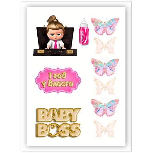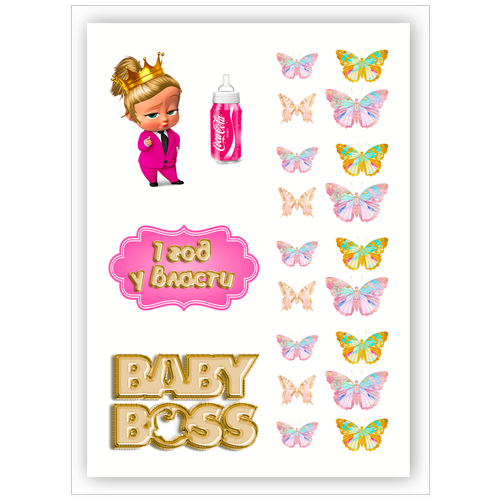 Вафельная толстая картинка для торта. Съедобная, пищевая картинка. Украшение для торта и декор для выпечки. Размер А4. "(Босс-молокосос)"