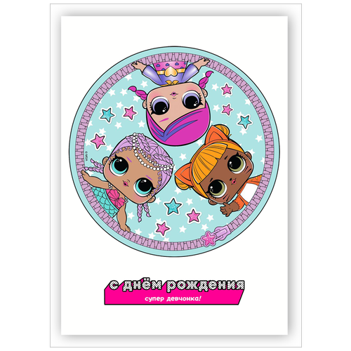 Вафельная толстая картинка для торта. Съедобная, пищевая картинка. Украшение для торта и декор для выпечки. Размер А4. "LOL (Куклы ЛОЛ)"