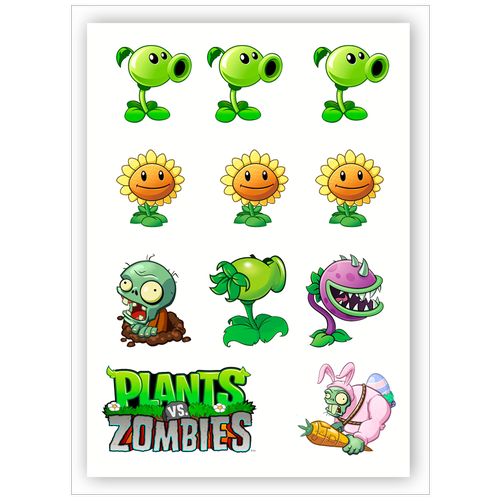 Вафельная толстая картинка для торта. Съедобная, пищевая картинка. Украшение для торта и декор для выпечки. Размер А4. "(Растения против зомби)"