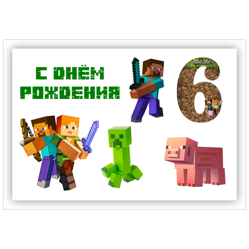 Сахарная картинка для торта. Съедобная, пищевая картинка. Украшение для торта и декор для выпечки. Размер А5. "Minecraft (Майнкрафт)"
