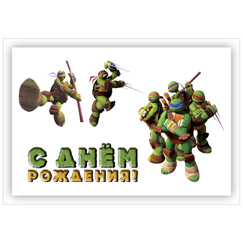 Сахарная картинка для торта. Съедобная, пищевая картинка. Украшение для торта и декор для выпечки. Размер А5. "Turtles (Черепашки Ниндзя)"
