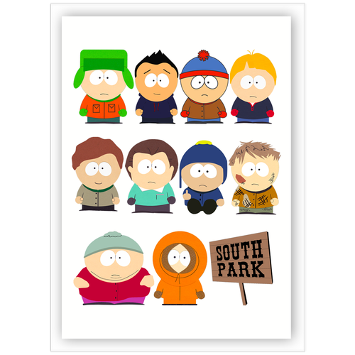 Вафельная толстая картинка для торта. Съедобная, пищевая картинка. Украшение для торта и декор для выпечки. Размер А4. "South Park (Южный Парк)"