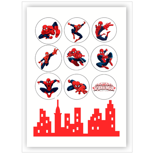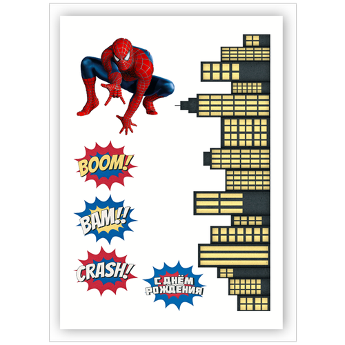 Вафельная толстая картинка для торта. Съедобная, пищевая картинка. Украшение для торта и декор для выпечки. Размер А4. "Spider-Man(Человек паук)"