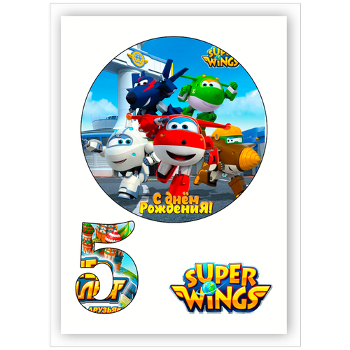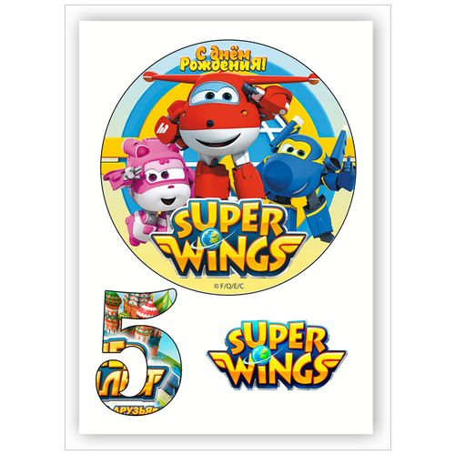 Вафельная толстая картинка для торта. Съедобная, пищевая картинка. Украшение для торта и декор для выпечки. Размер А4. "Super Wings (Супер крылья)"