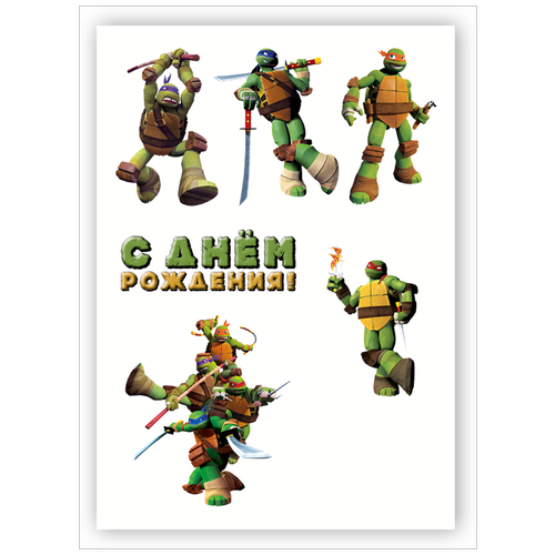 Вафельная толстая картинка для торта. Съедобная, пищевая картинка. Украшение для торта и декор для выпечки. Размер А4. "Turtles (Черепашки Ниндзя)"