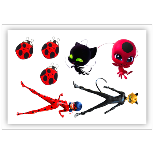 Вафельная толстая картинка для торта. Съедобная, пищевая картинка. Украшение для торта и декор для выпечки. Размер А5. "(Леди Баг и Супер-Кот)"